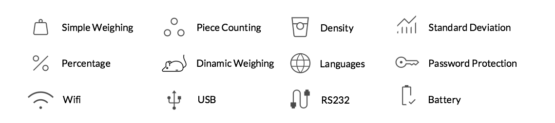 For every need, Rechargeable batteries ("BP" models) , customizable weighing pans are available. masses for full scale calibration, Software specially designed to improve and speed up the weighing processes. It is also possible to combine them with Anti-vibration weighing tables and Printers .